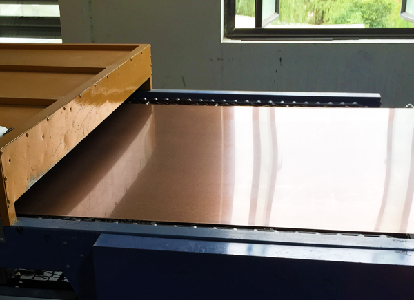 該工藝通過浸泡過油漆的膠輥滾式運動涂在待處理面,均勻留下油漆層。前段清洗烘干一體機(jī)(選購)可以將待處理板材表面清洗干凈,為滾涂油漆做準(zhǔn)備。后段的烘干設(shè)備(選購)可為板材表面最終貼膜處理做好準(zhǔn)備。