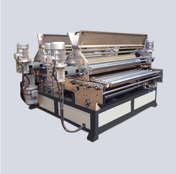 該工藝通過浸泡過油漆的膠輥滾式運動涂在待處理面,均勻留下油漆層。前段清洗烘干一體機(jī)(選購)可以將待處理板材表面清洗干凈,為滾涂油漆做準(zhǔn)備。后段的烘干設(shè)備(選購)可為板材表面最終貼膜處理做好準(zhǔn)備。